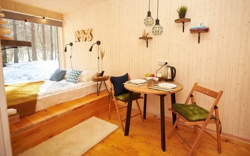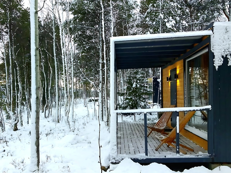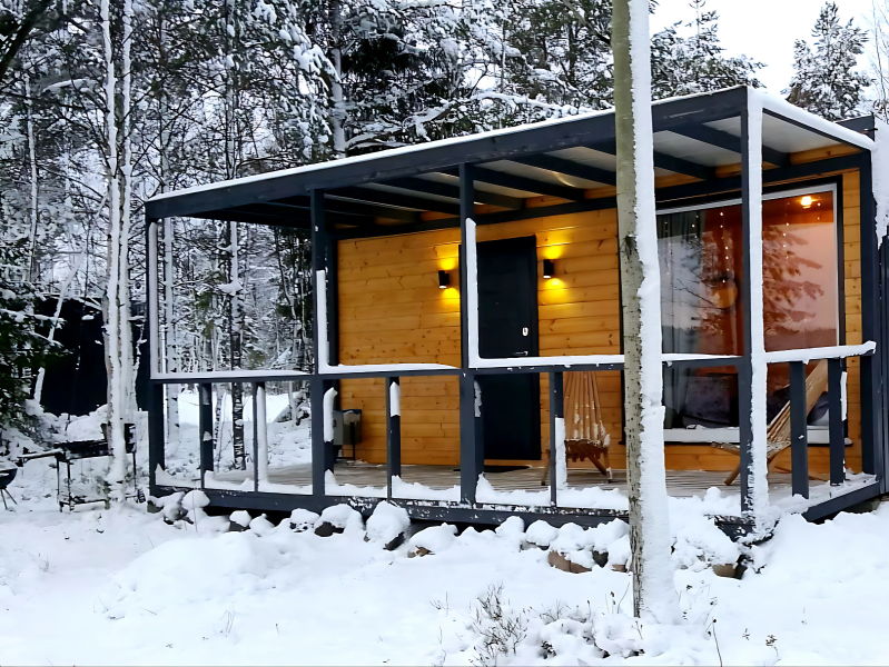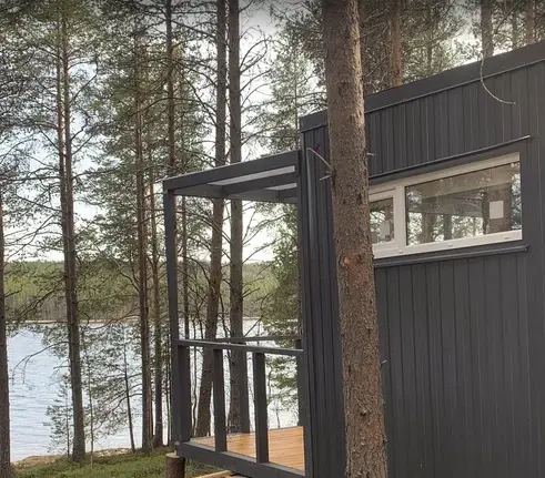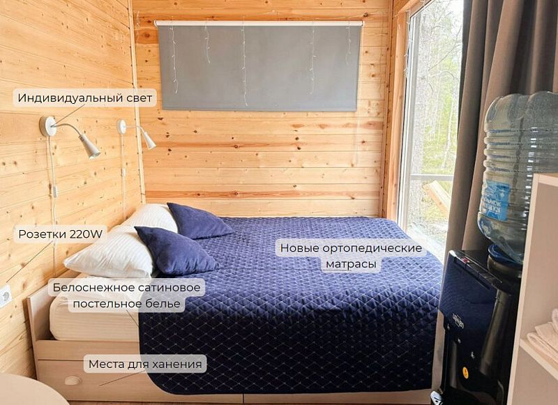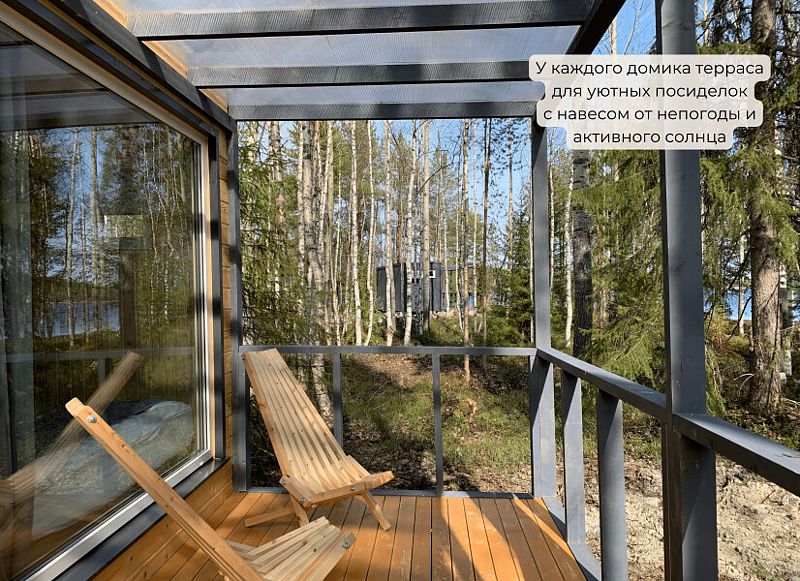 Вас ждут стильные двухместные домики с панорамными окнами, позволяющими насладиться красотой карельской природы.