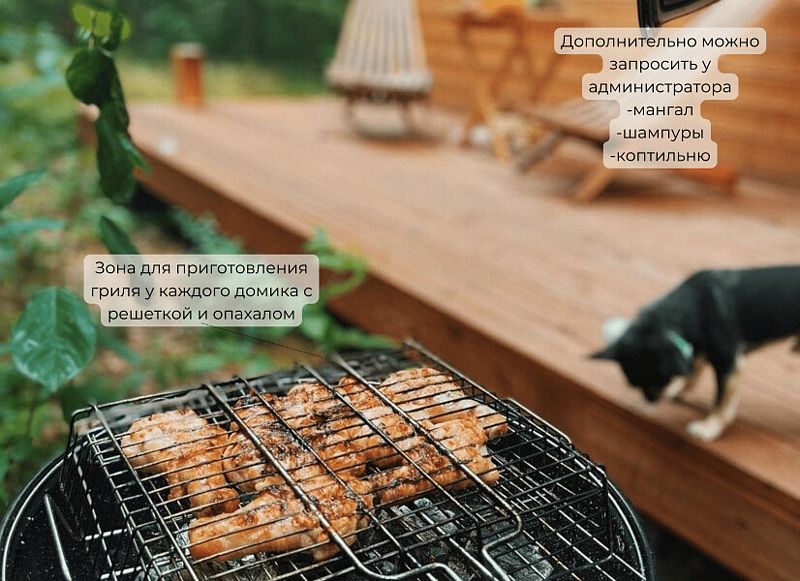 - Проживание с животными (только собакой) возможно в определенных, специально подготовленных домиках.