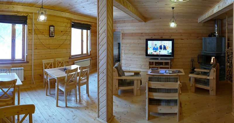 В каждой из трёх комнат имеются отдельные санузлы с душевыми кабинами (горячая вода — круглосуточно). В одной из комнат установлена большая двуспальная кровать, плазменная панель со спутниковым TV и DVD. Электричество подаётся от ветро-дизель генератора. Питьевая вода завозится из ближайшего родника, хотя можно смело брать воду и прямо из озера.