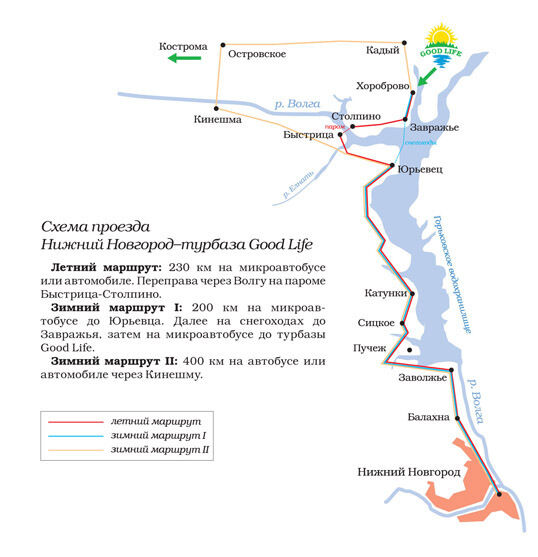 Загородный клуб «Good Life» находится в деревне Хороброво Костромской области, на самом берегу реки Немда, впадающей в Горьковское море.