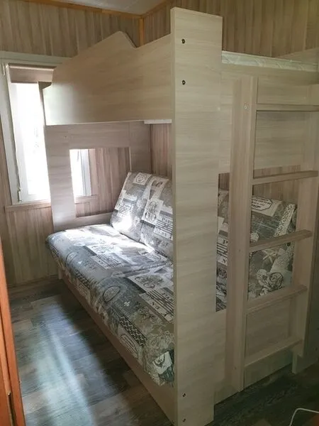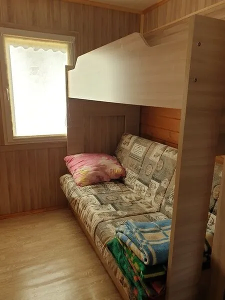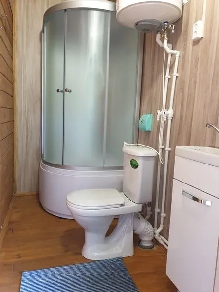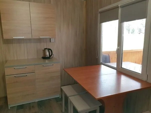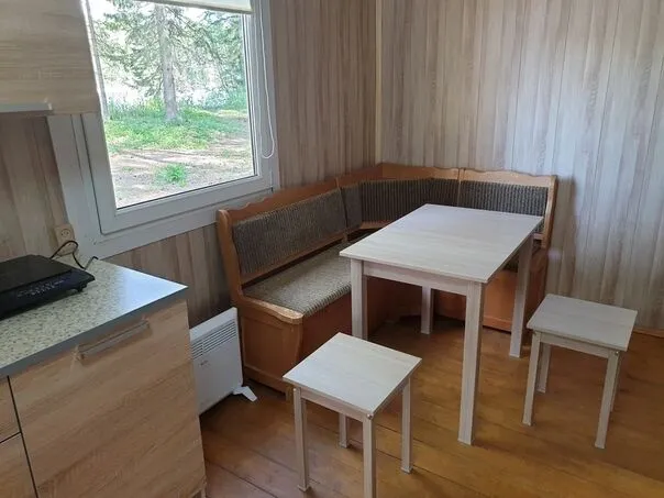 Коттедж "Кувшинка" вместимостью до 5-ти отдыхающих. Расположен на берегу оз. Раковическое. Открытая терраса, гостиная-кухня, в ней кухонный уголок, стол, табуретки, холодильник, индукционная плитка, э/чайник, кухонные принадлежности. Две отдельные комнаты с двухъярусной кроватью и двухспальной соответственно. Водоснабжение из собственной скважины. Санузел с душевой кабиной. Парковка.