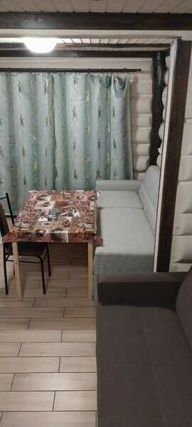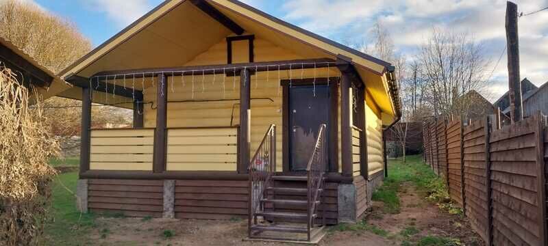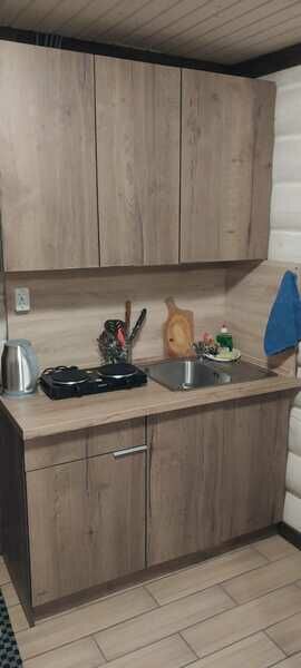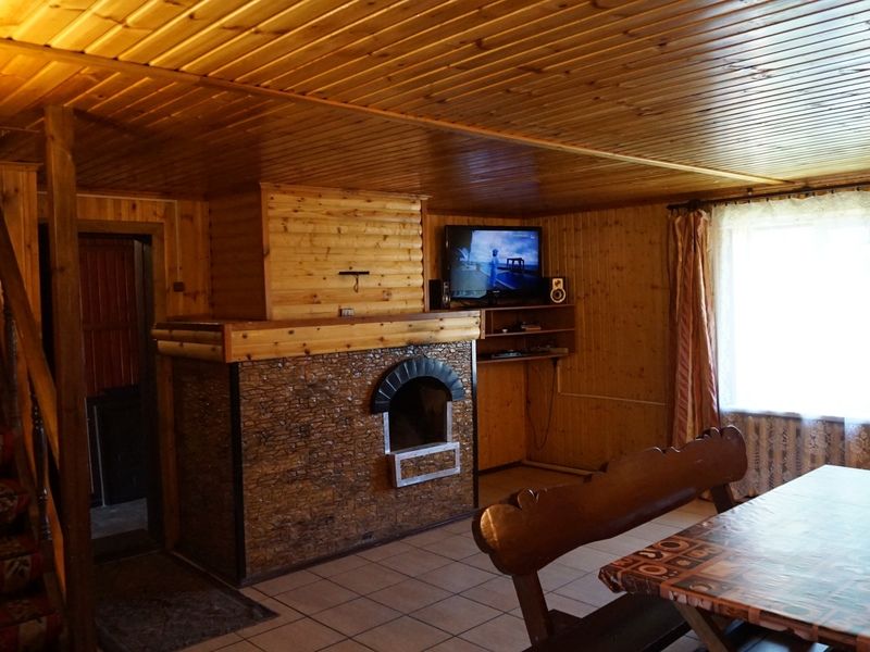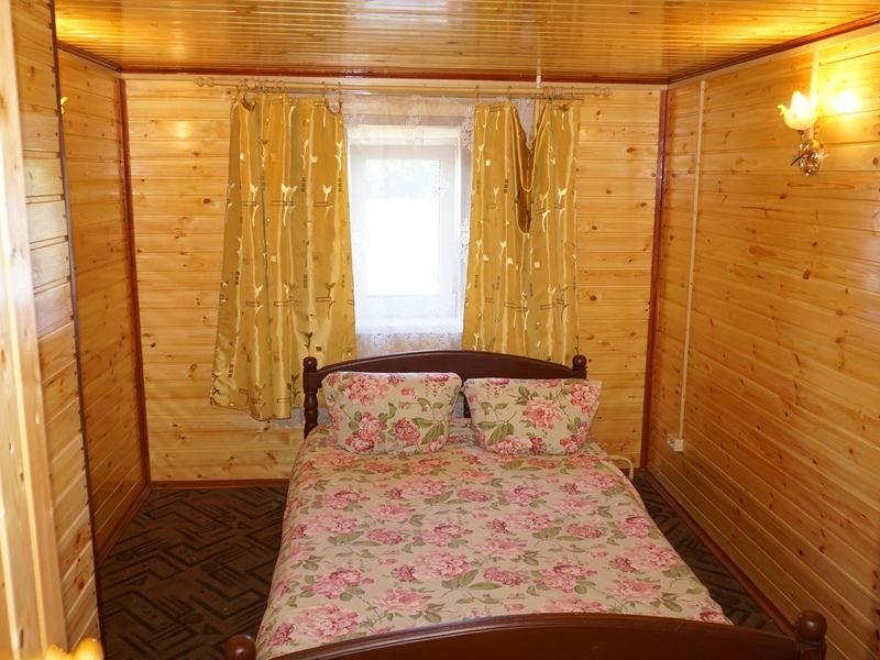 Коттедж с баней. В доме: телевизор, кухня с холодильником, электрической плиткой, чайником, набором посуды, обеденный стол и стулья, диваны, раздельный санузел с туалетом и душем, фен. При пользовании баней оплачивается стоимость дров 1000 руб.