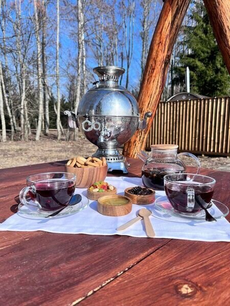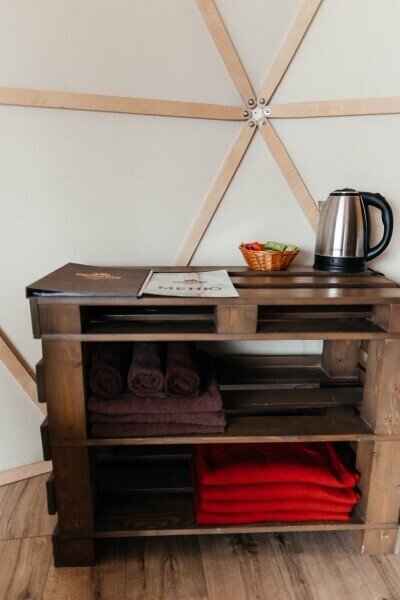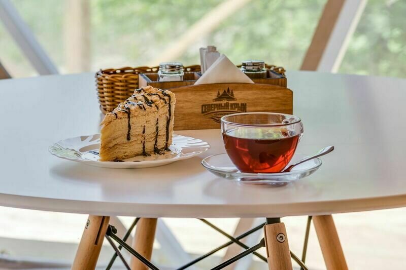 На территории глэмпинга есть множество развлечений и удобств. Сибирский чан для парения на свежем воздухе, уникальное кафе-сфера, предлагающее вкусные завтраки, а также вечернее караоке, позволят вам весело и разнообразно провести время. Для активных гостей доступны волейбольное поле, спортивная площадка и детская зона с горкой и качелями. Любителям рыбалки предлагается прокат снастей. А для тех, кто ценит экологичность, на территории можно приобрести свежую фермерскую продукцию по привлекательным ценам.
