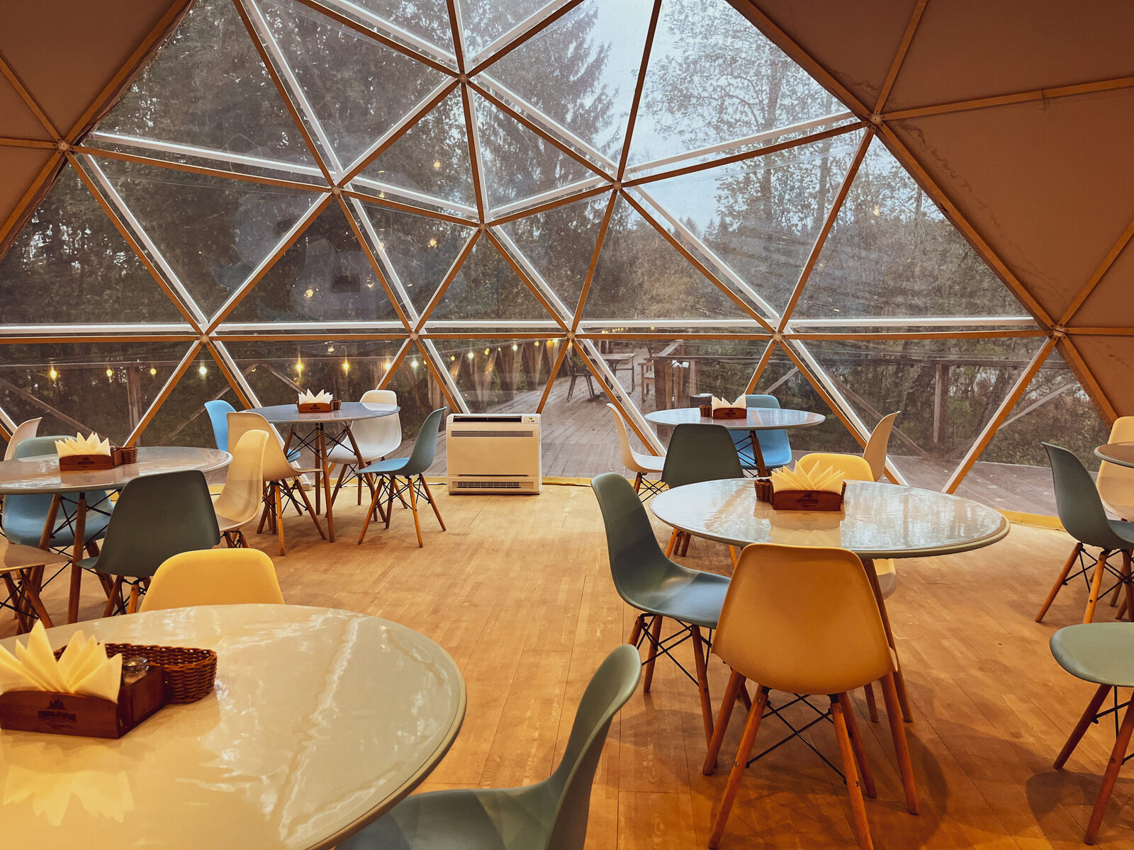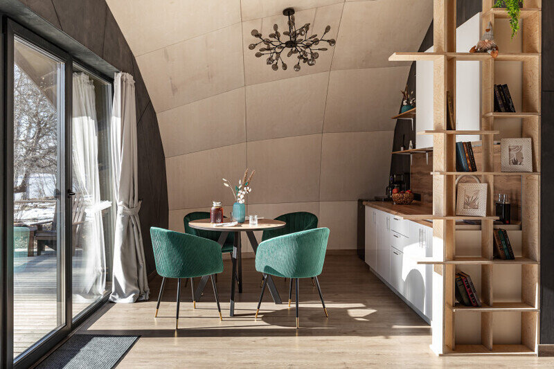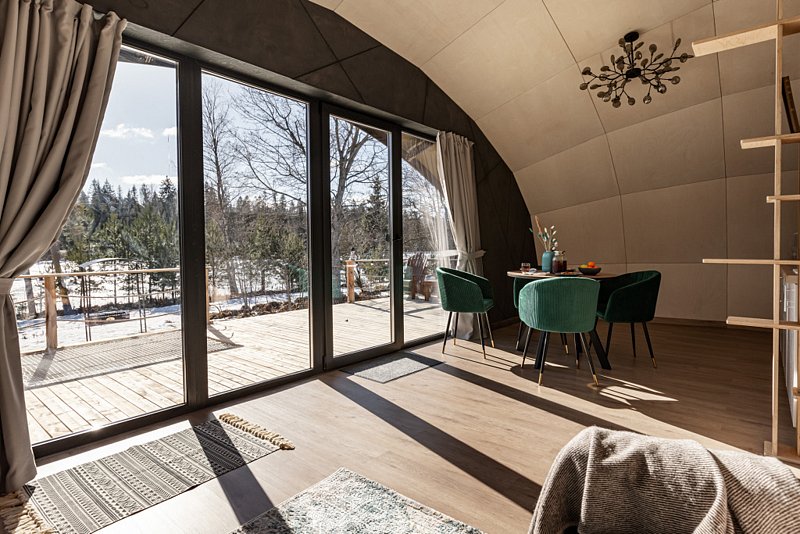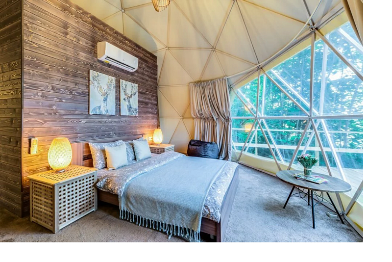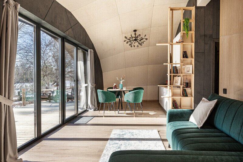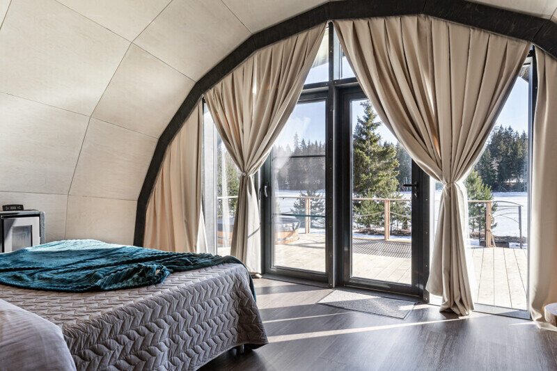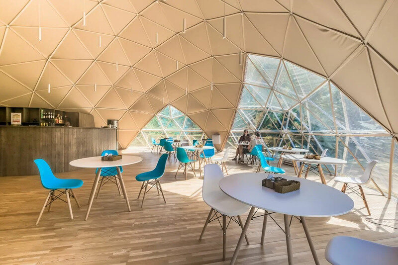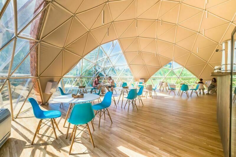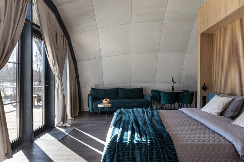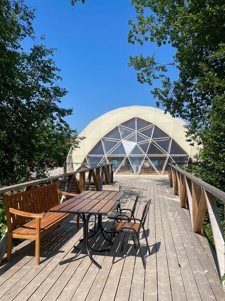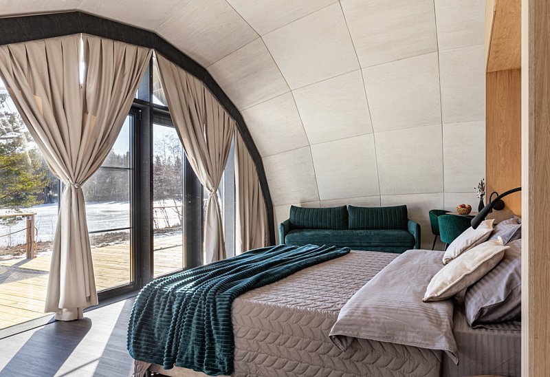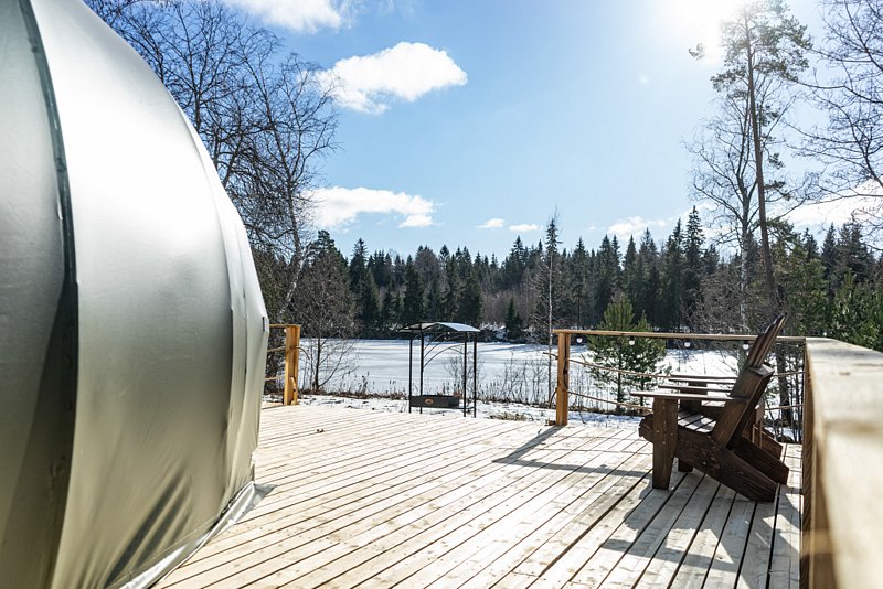 🔻Ощущение уединения. С двух сторон от сферы деревья, с третьей — озеро. Всё это создаёт уют и скрывает от посторонних взглядов.