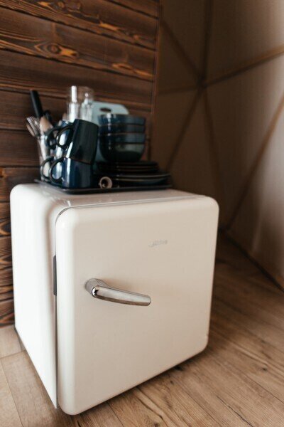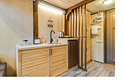 Кухонная зона: мини-холодильник, эл. чайник, комплект посуды, умывальник