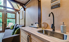 • Кухонная зона: мини-холодильник, плитка, эл. чайник, комплект посуды, раковина