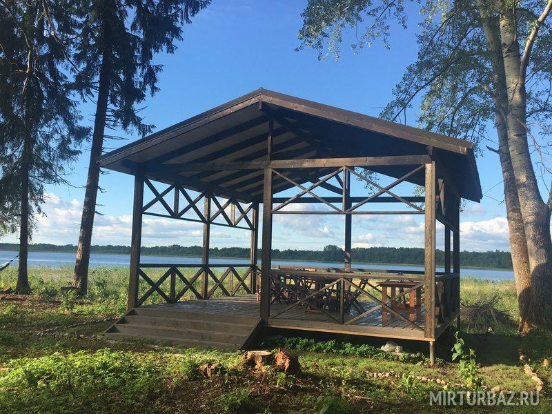 Просторная, крытая беседка на берегу озера способна комфортно вместить до 10 человек.