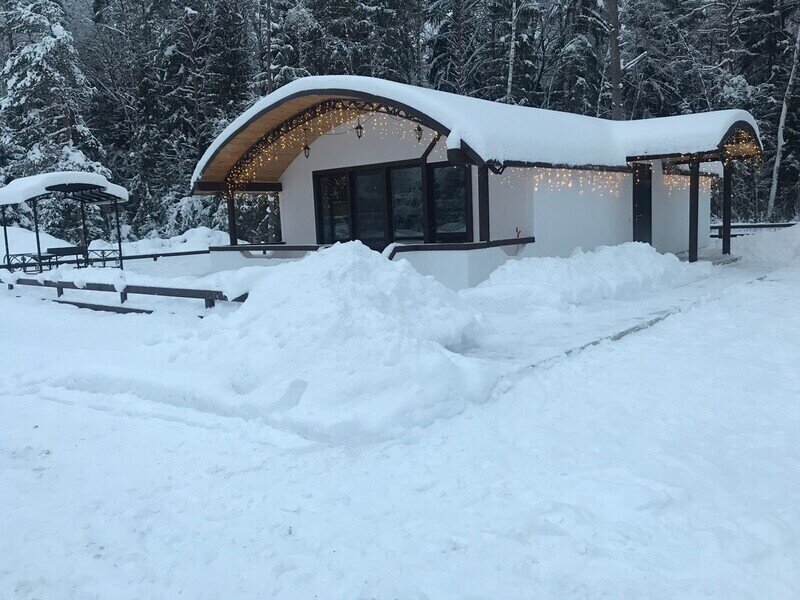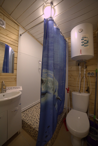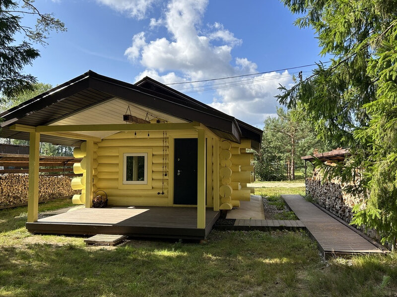 Баня находится недалеко от домиков, в лесу. Состоит из зоны парилки с душевой и зоны отдыха с террасой.