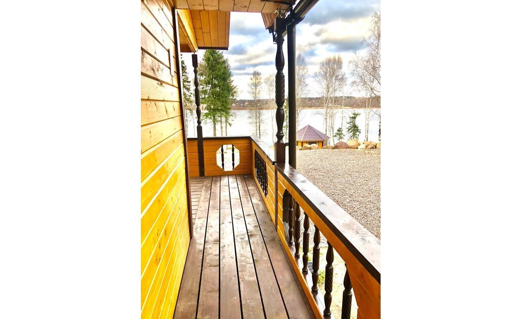 Vip-дом расположен на берегу Меревского озера, имеет два этажа. Свой собственный дворик с зоной барбекю, лежаки, уличный стол, стулья для компании. Парковочные места.