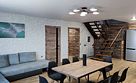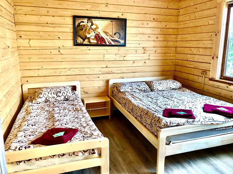Дом имеет три отдельные спальни, большую кухню-гостиную с дополнительными спальными местами, кухня оснащена всем необходимым для комфортного размещения. Также в доме для удобства наших гостей два туалета, на первом этаже и втором этаже.