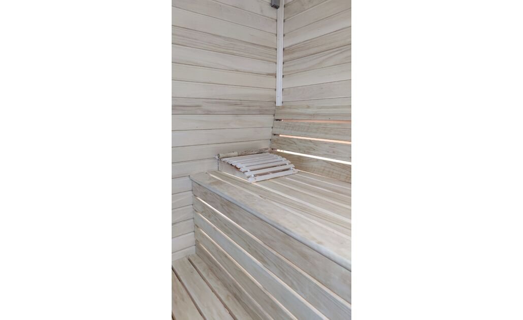 На заднем дворе комплекса расположена зона для барбекю с мангалом, где можно насладиться ароматом свежего мяса на открытом воздухе. Для посещения бани требуется предварительная запись, а минимальный срок аренды составляет два часа.