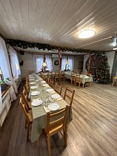 Зал базы отдыха «Солнечная» является многофункциональным и может использоваться для различных мероприятий: от праздничных фуршетов и свадеб до дней рождения и деловых встреч. В зале предусмотрена возможность подключения вашего ноутбука или компьютера к мультимедийному проектору. Проектор и экран предоставляются дополнительно.