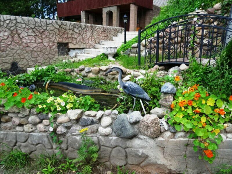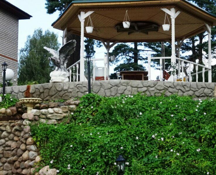 В отеле есть все необходимое для путешественника и даже больше. В номере: холодильник, чайник, 2 чашки, упаковка одноразовой посуды?))). огромная кровать, раскладной диван, туалетный столик, большой шкаф, прикроватная тумба, журнальный столик, огромный телевизор (по кол-ву каналов сказать ничего не могу, ибо некогда было), в ванной комнате есть банные принадлежности, горячая вода всегда в наличии, напор не слабый, туалетная бумага и освежитель воздуха (для "незвездочных" отелей это высший пилотаж)! На первом этаже есть кухня, где можно готовить самостоятельно ( по желанию можно заказать еду в номер из кафе с которым сотрудничает отель), есть прачечная с автоматической сушилкой и гладильная доска со всеми прибамбасами. номер был с балконом (уточняйте при заселении). На первом этаже так же есть бильярд и настольный то ли футбол, то ли хоккей (опять же не до них), есть отдельный выход на улицу. беседка с мангалом, грилем и красивейшим фонтаном. Большое парковочное место. А главное тишина и покой! обслуживание приятное и ненавязчивое, но все просьбы исполняются обязательно. Понятно, что можно говорить о гостиничном сервисе долго, но в соотношении цена-качество это лучший вариант! проверено лично, на опыте страдалиц, которые одновременно со мной были в Луге, но снимали номера в других гостиницах))))) НЕ дорого (поверьте мне-я много мотаюсь по России) и прилично. А еще здесь не бывает (сауны то нет) групп выходного дня (типа вывоз девочек воздухом подышать)))))) В целом ооооочень даже хорошо!