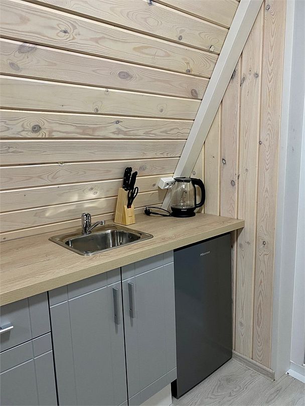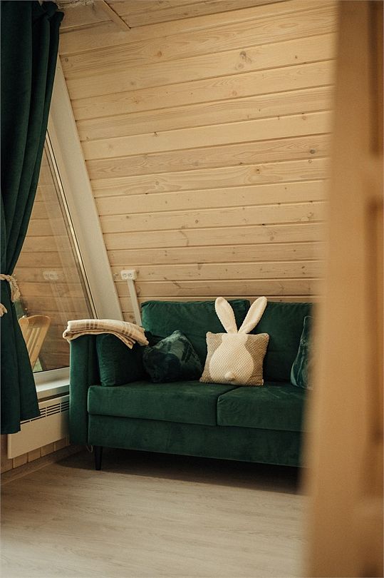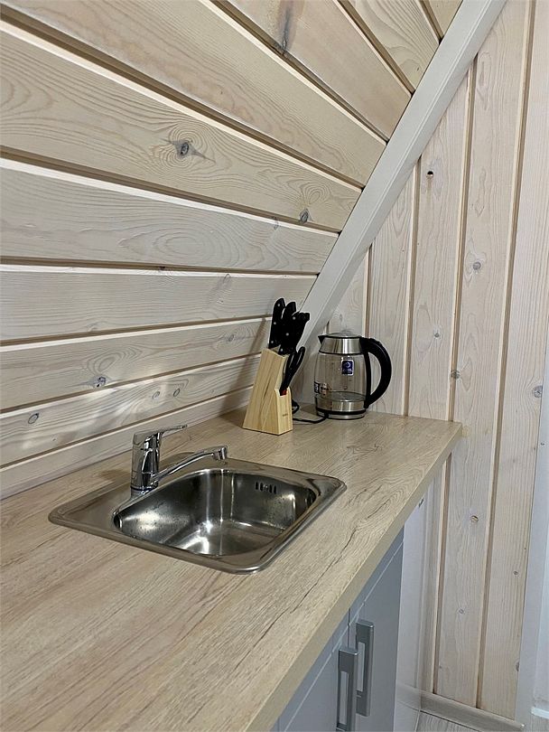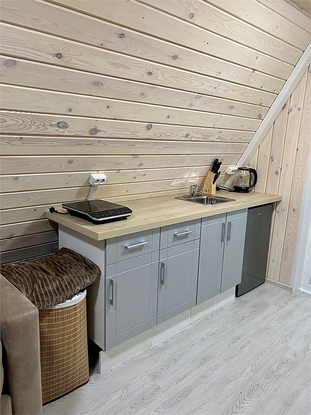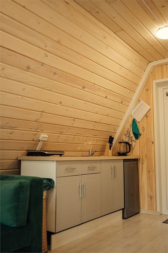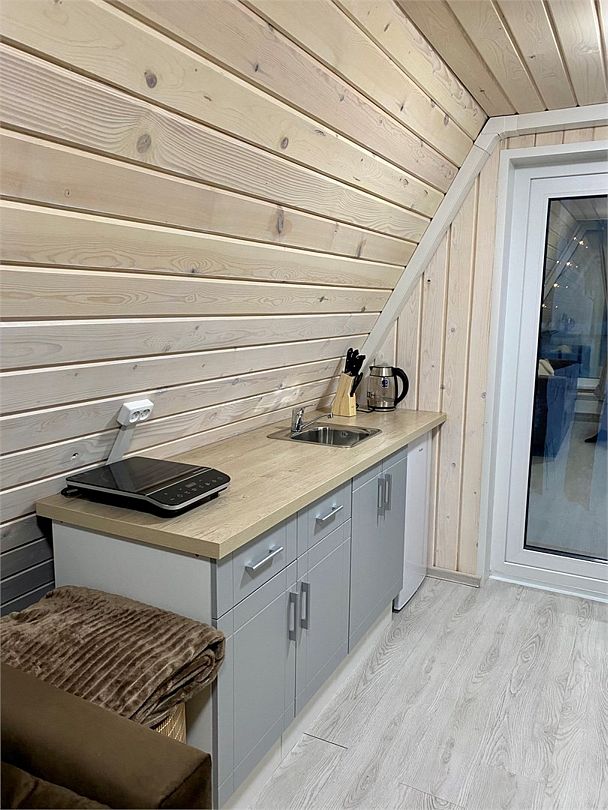 Внутри домика создано все для комфортного проживания. На первом этаже двухспальный диван, оборудованная кухня, телевизор, туалет и душ. На втором этаже двухспальная кровать. Есть Wi_Fi. А еще к нам можно с домашними питомцами, для них проживание бесплатно.Услуги и удобства