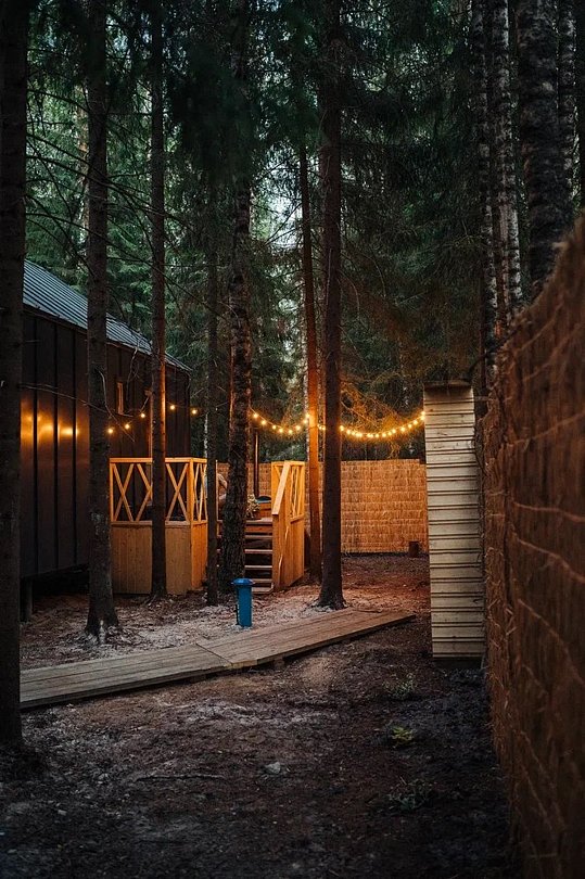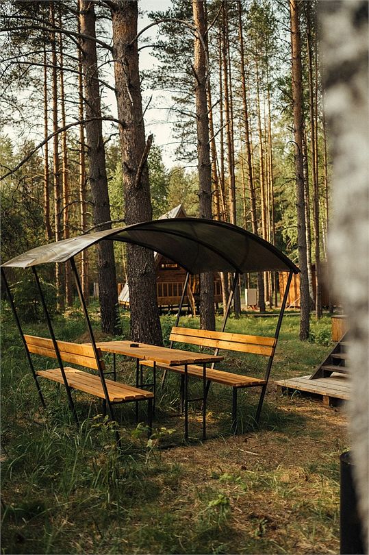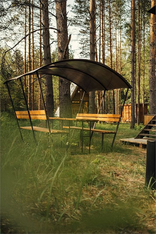 Каждый домик оборудован уютной беседкой с мангальной зоной, предоставляя идеальное место для семейных встреч или посиделок с друзьями, где можно приготовить вкусный шашлык и насладиться атмосферой отдыха на свежем воздухе.
