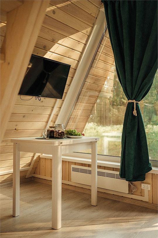 Мы до мелочей продумали комплектацию дома,чтобы нашим гостям было максимально комфортной нем отдыхать. В каждом доме есть wi-fi вы можете без проблем совмещать отдых и работу. Стандартный дом в стиле Афрейм, построен из экологически чистых материалов, расположен в хвойном лесу с наичистейшим воздухом.Услуги и удобства