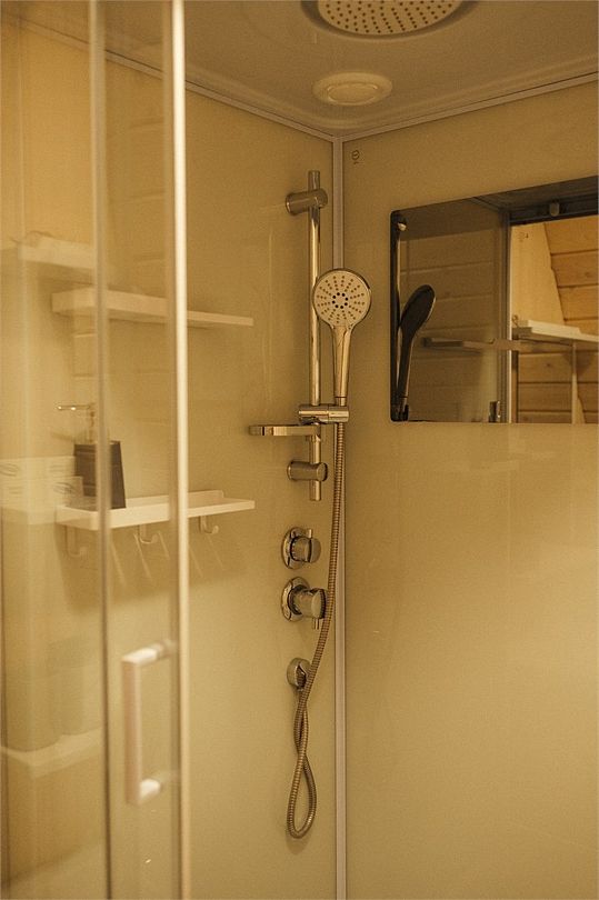 Внутри домика создано все для комфортного проживания. Внизу двухспальный диван, оборудованная кухня, телевизор, туалет и душ. На втором этаже двухспальная кровать. Есть Wi-Fi. А еще к нам можно приезжать с домашними питомцами, для них проживание бесплатно.Услуги и удобства