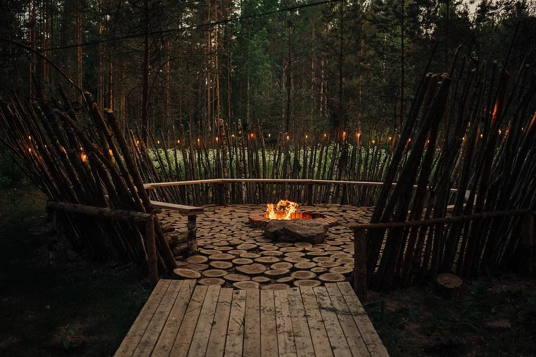 Гости могут не только посетить баню, но и окунуться в купель Фурако, оборудованную дровяной печью и запаркой с натуральными травами, собранными в Ленинградской области. Это современное дополнение к традиционным банным процедурам обеспечивает глубокое расслабление и восстановление сил после парения на свежем воздухе.