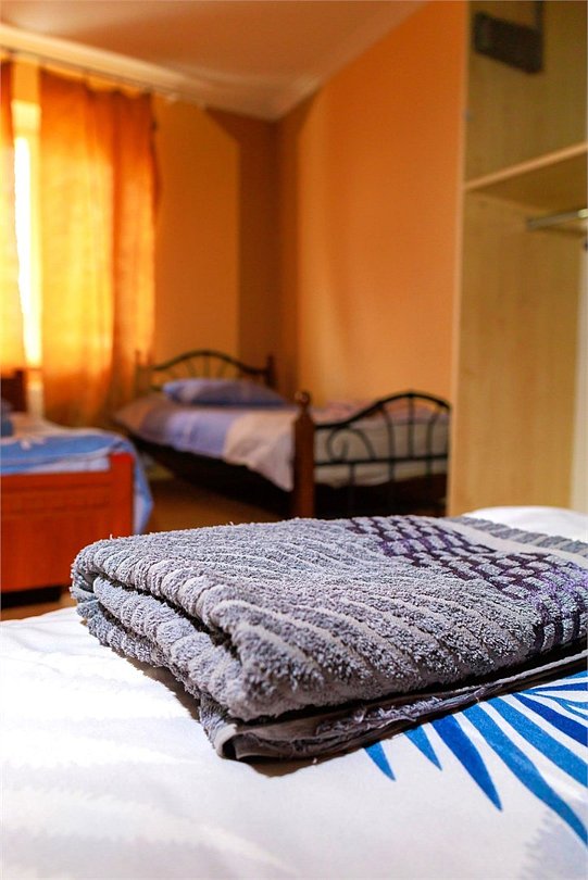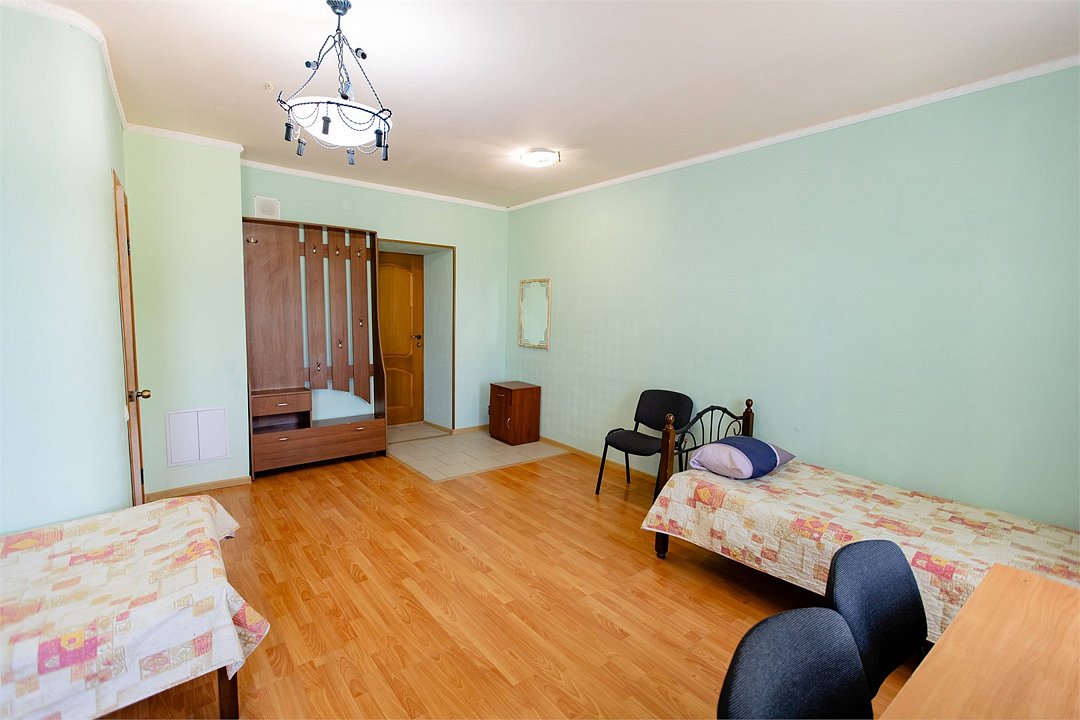 Просторный номер с пятью раздельными кроватями. Площадью 45 кв. м В номере есть: телевизор, кондиционер, мебель, приветственная вода, электрический чайник, чайно-кофейный набор, тапочки, ванные принадлежности.Услуги и удобства