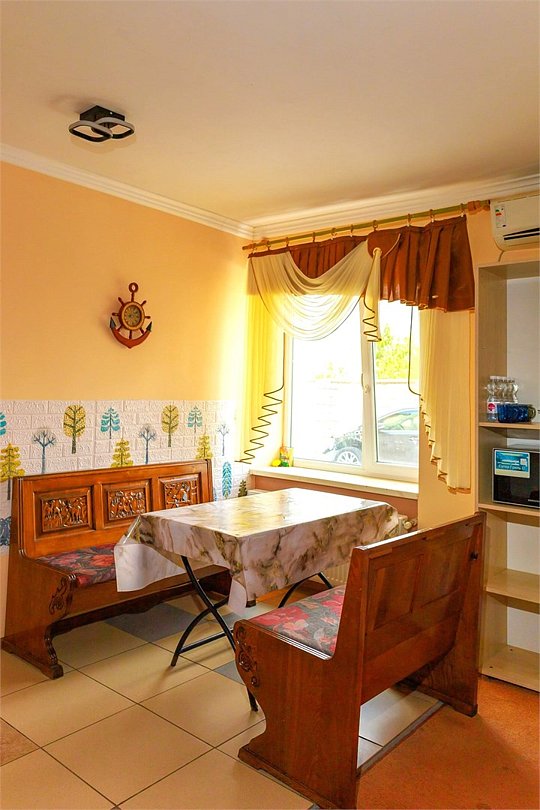 Wi-Fi, холодильник, кондиционер, микроволновая печь, душевая кабина, санузел, тапочки, кресла, вешалки, зеркало, обслуживание номеров, чайник, вид на сад, пять односпальных кроватей, стул, туалетный столик, туалетные средства, мангал, принадлежности для барбекю, кухонный уголок, номер для некурящих, уборка номера, набор для приготовления чая и кофе, услуги прачечной (платно), бутилированная водаВ месте в номере