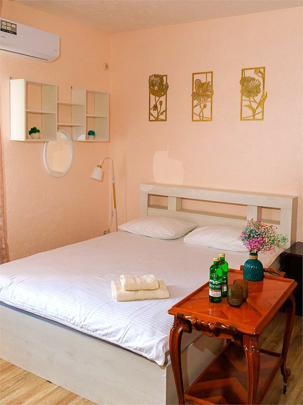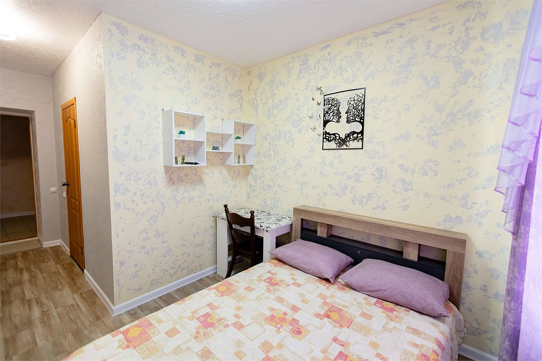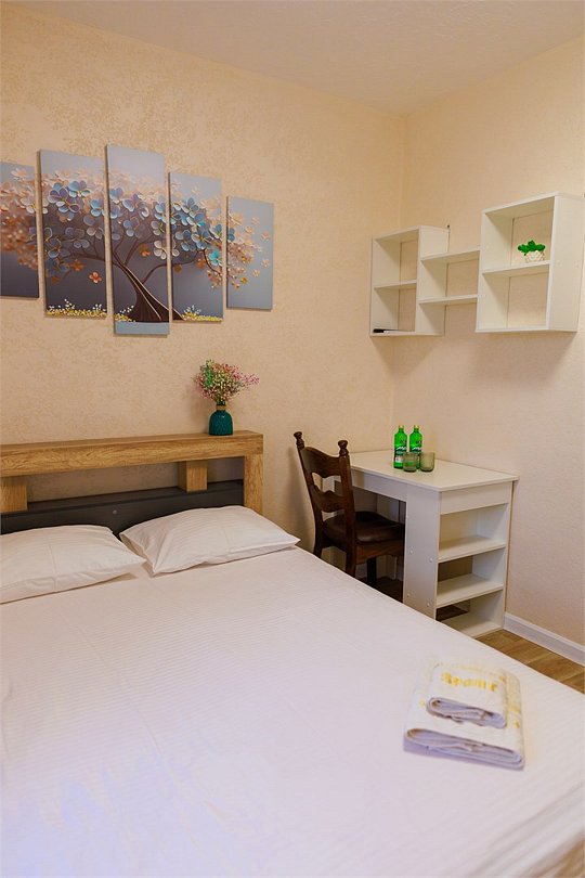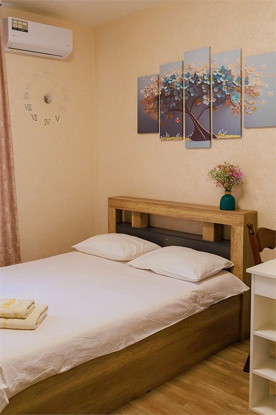 Уютный номер с двуспальной кроватью. Площадью до 25 кв. м В номере есть: телевизор, кондиционер, мебель приветственная вода, электрический чайник, чайно-кофейный набор, тапочки, ванные принадлежности.Услуги и удобства