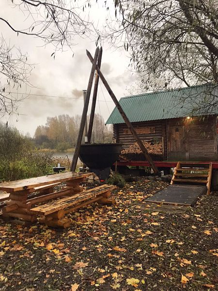 Рядом с крыльцом дома причал для лодок и катамаранов, казан-мангальная зона, русская банька и сибирский банный чан.