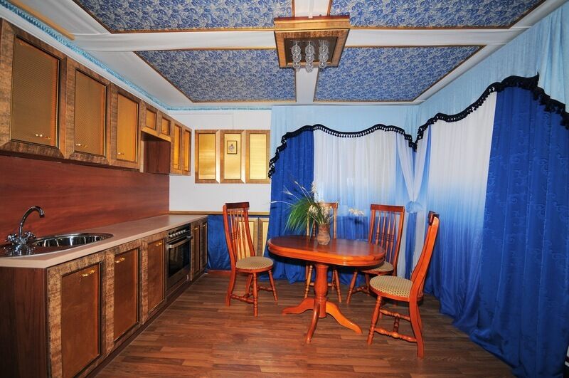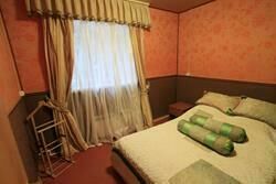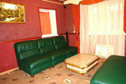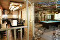 Отдельно стоящий дом в лесу. Собственная территория с большой крытой беседкой, мангалом и стоянкой для автомашин. Крытая беседка вмещает 15 человек. Терем в два этажа с двумя кухнями - оборудованные всем необходимым, две шикарные спальни, две просторных зоны отдыха с мягкой мебелью – трансформер по индивидуальному проекту, санузлы, сауна на 4-5 чел. с комнатой отдыха, банкетный зал на 16 мест. Профессиональный бильярд. Помещения коттеджа оснащены самой современной теле и звуковой аппаратурой, спутниковое TV. Открытый большой, освещаемый балкон-лоджия на втором этаже с деревянными креслами и столом.