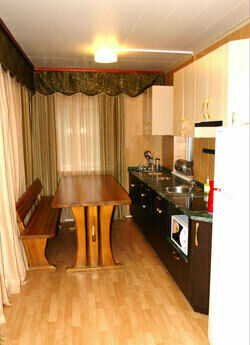В номерах: холодильник, чайник, микроволновка, эл.плита, стол, кровати - 2хспальная, 2хспальная, 2хспальная, тумбочки прикроватные, вешалка, телевизор, постельное белье, полотенца.
