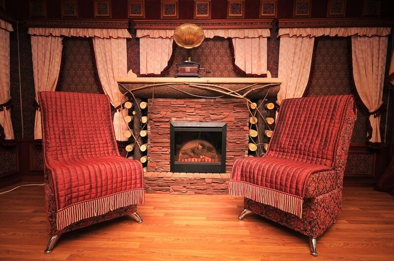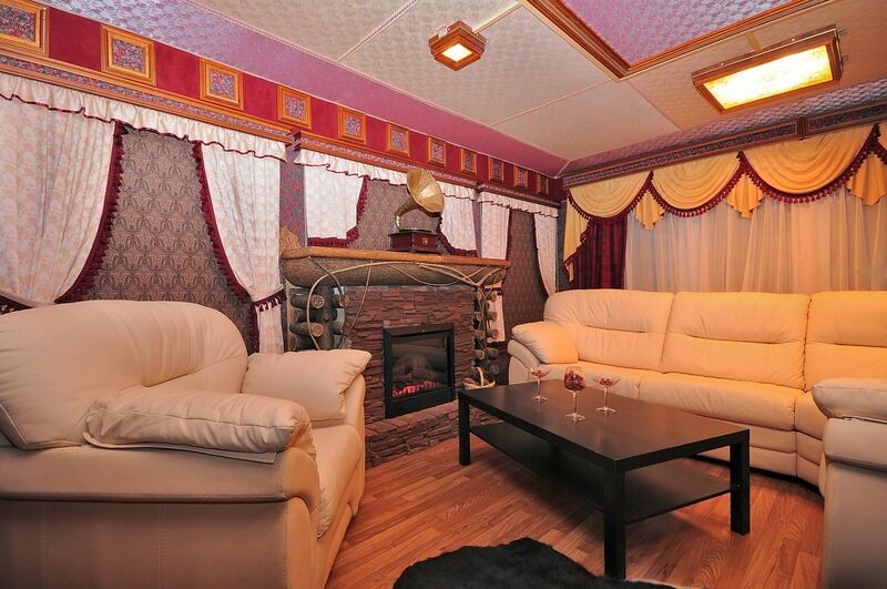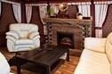 Комната отдыха: кожаный диван, кожаные ортопедические кресла для расслабления, шкуры животных.