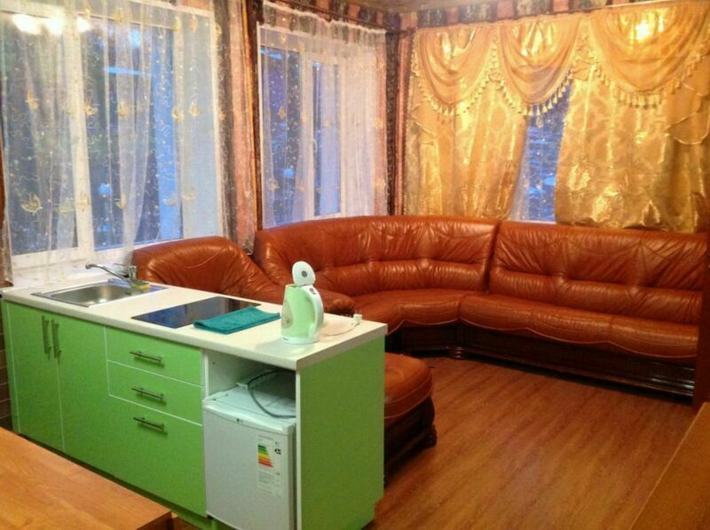 Номер "Полу-люкс" можно назвать домом “Полу-люкс”. Это отдельно стоящий деревянный дом (дом №3), в котором Вас ждут 2 раздельные спальни, веранда-зал и небольшая кухня с электроприборами (чайник, холодильник, электрическая плита, микроволновка, посуда).