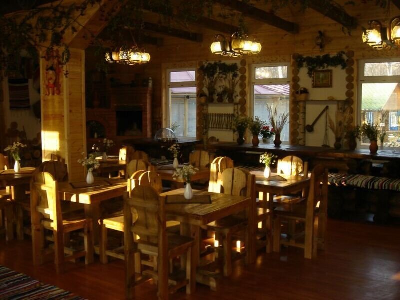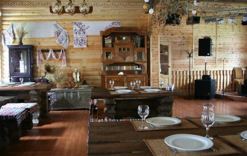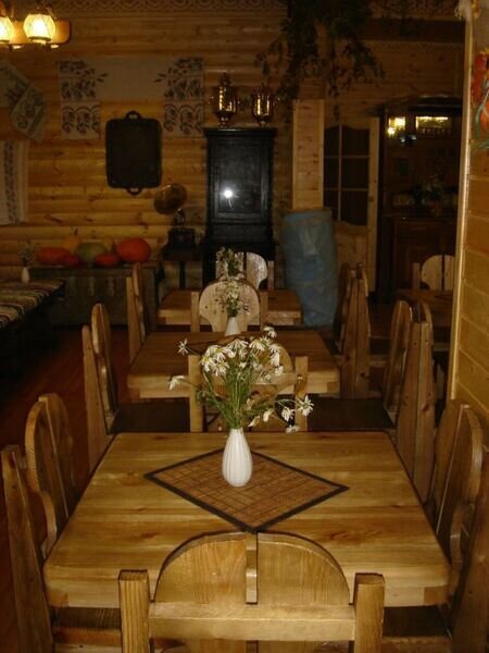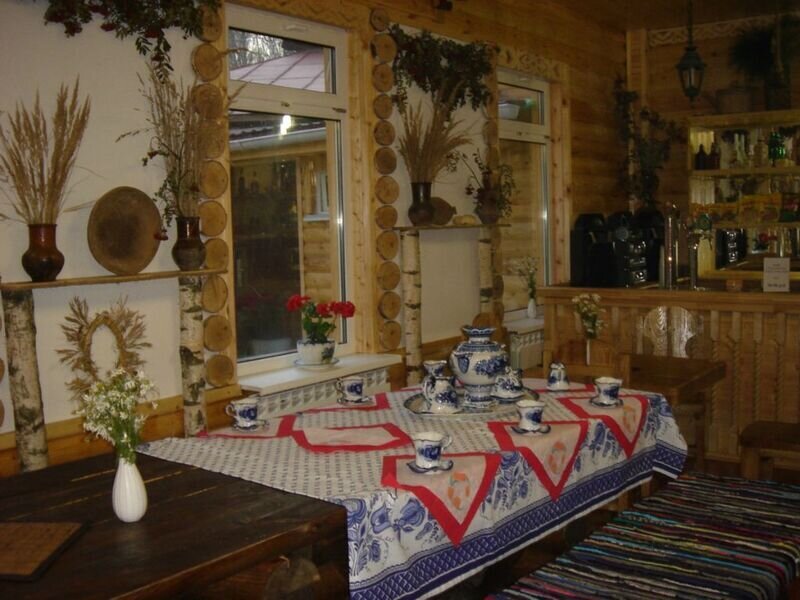 В трапезной на 65 гостей проводятся корпоративные празднества, банкеты, свадьбы и юбилеи. Интерьер трапезной оформлен в традиционном русском стиле. Блюда готовят из экологически чистых продуктов собственного производства.