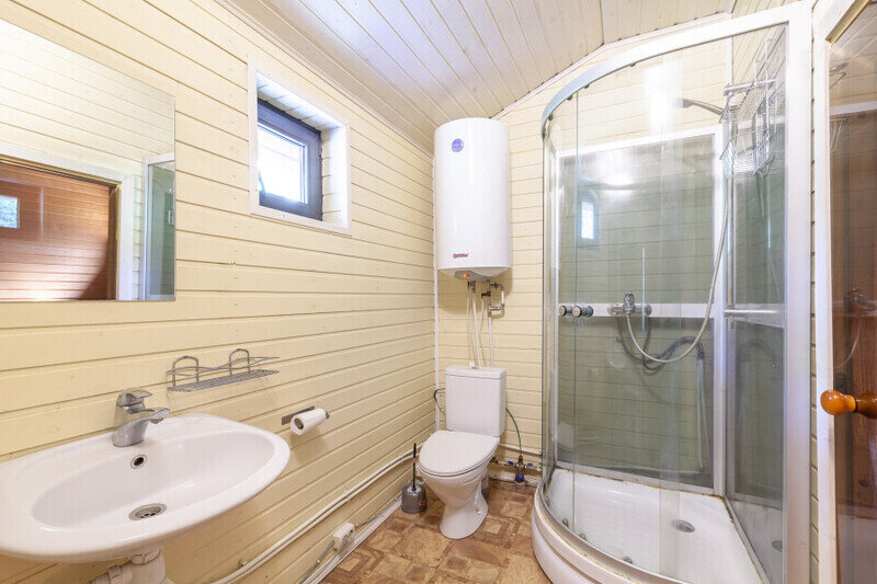 Дровяная сауна с финской печкой. Совмещённый душ туалет.