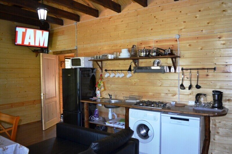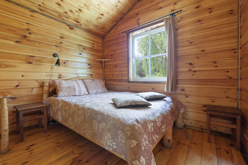 Отдыхающие могут расположиться в уютных благоустроенных домиках. Они оснащены всем необходимым для проживания с комфортом: удобными кроватями с постельным бельём, собственной ванной комнатой с горячей водой и полотенцами, а также камином, телевизором и бесплатным Wi-Fi.