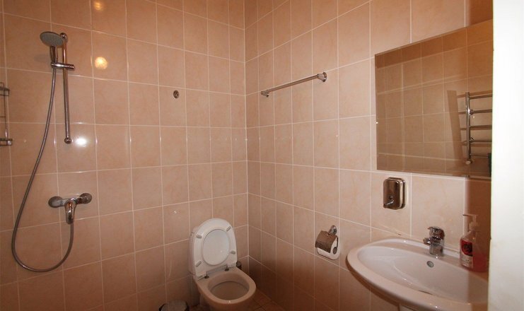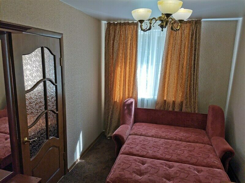 Двухкомнатный номер, двуспальная кровать, сан. узел, душевая кабина в номере, телевизор, холодильник.