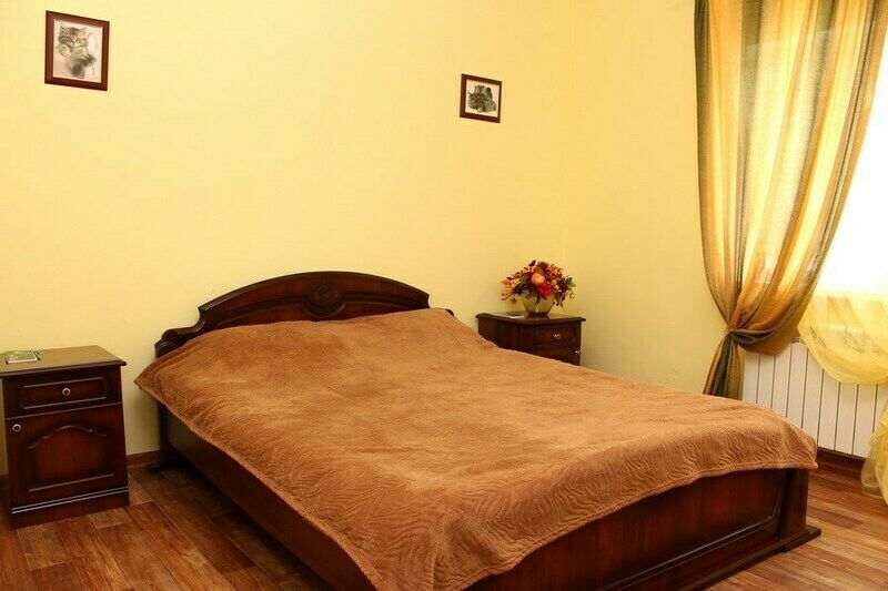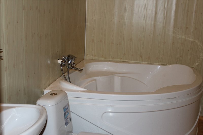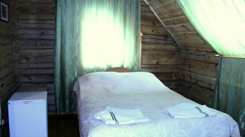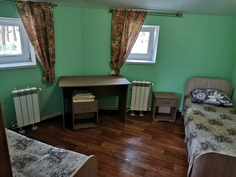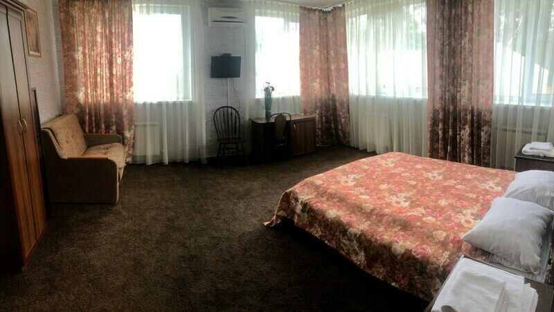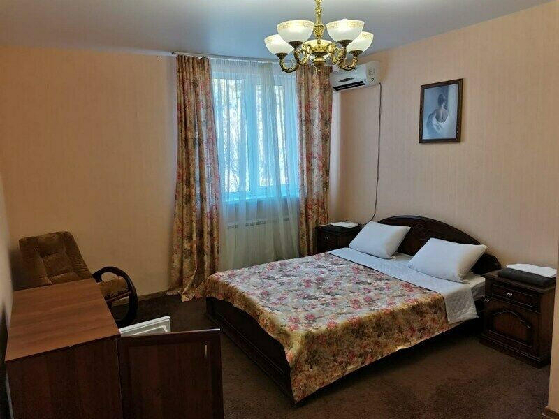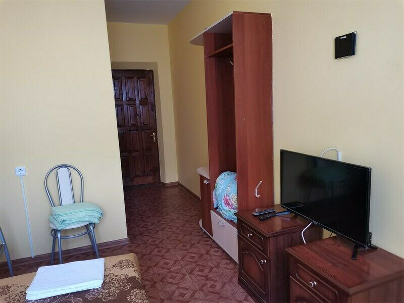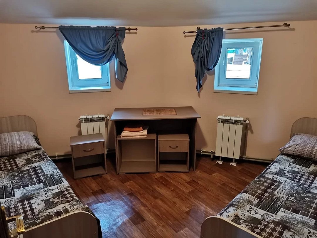 Однокомнатный номер со всеми удобствами с двуспальной кроватью, телевизором и холодильником, с кондиционером. Возможность обеденным залом на первом этаже корпуса "Витязь".