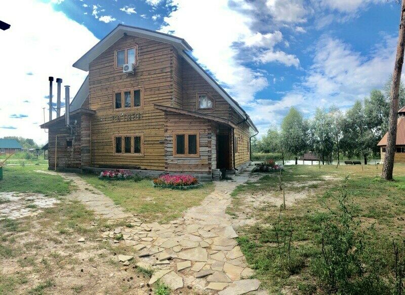 Территория турбазы большая, река находится в двух минутах ходьбы от дома, который мы снимали.