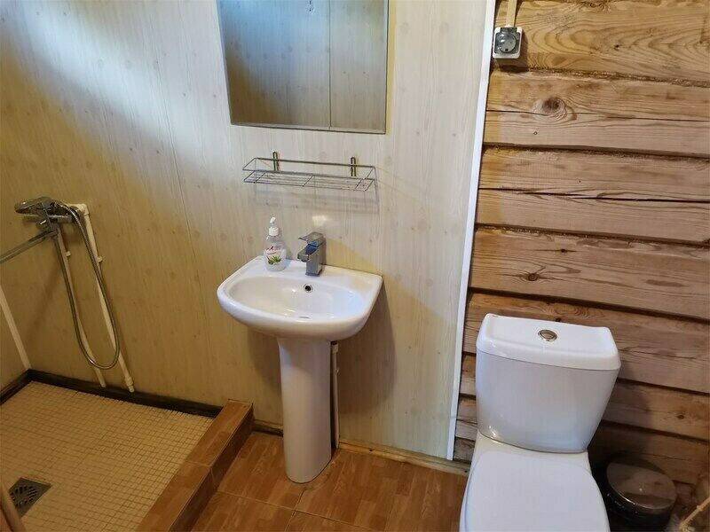 Комфортабельный двухэтажный номер в коттедже из натурального дерева. На первом этаже: открытая терраса для отдыха, кухня с обеденной зоной, гостиная с раскладным диваном, спальня с двумя раздельными кроватями, санузел с душем, кондиционер. На втором этаже - спальня с двуспальной кроватью и санузел. Собственная зона барбекю с мангалом. Место для парковки.