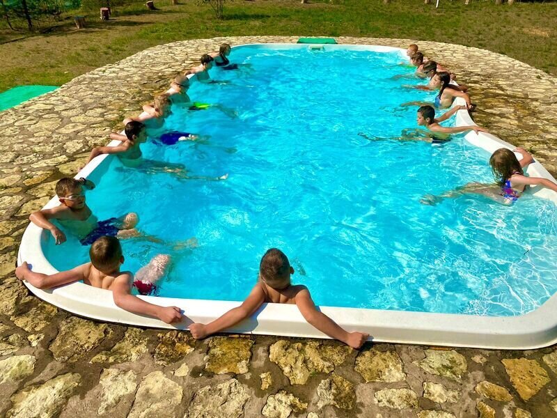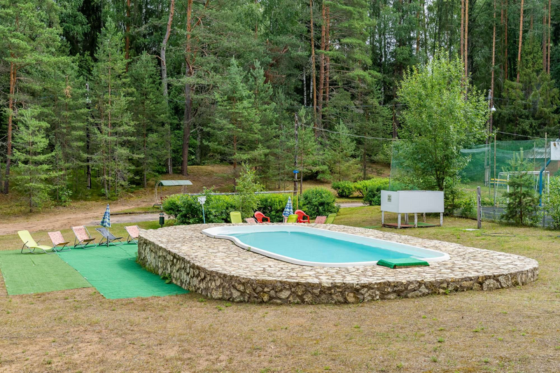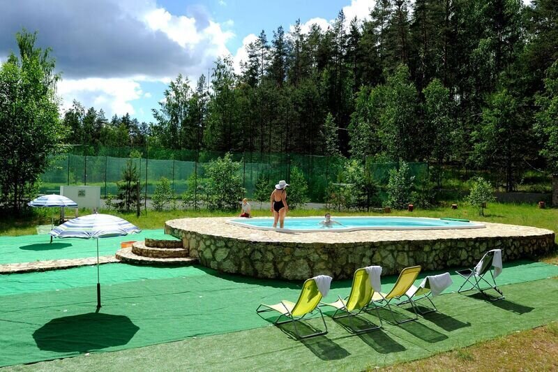 На территории турбазы оборудован просторный бассейн под открытым небом для взрослых и детей с обустроенной зоной для загара и расслабленного времяпровождения.