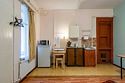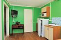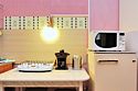 - микроволновая печь, холодильник, двухкомфорочная газовая плита, электрический чайник, комплект посуды;
