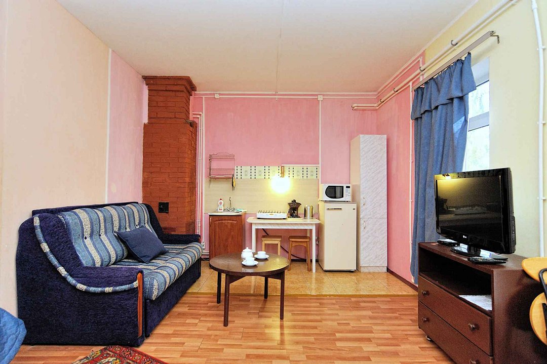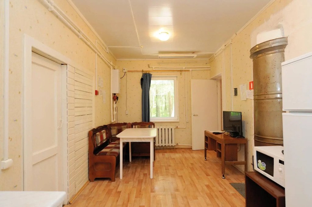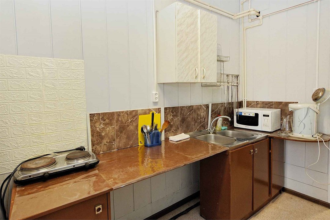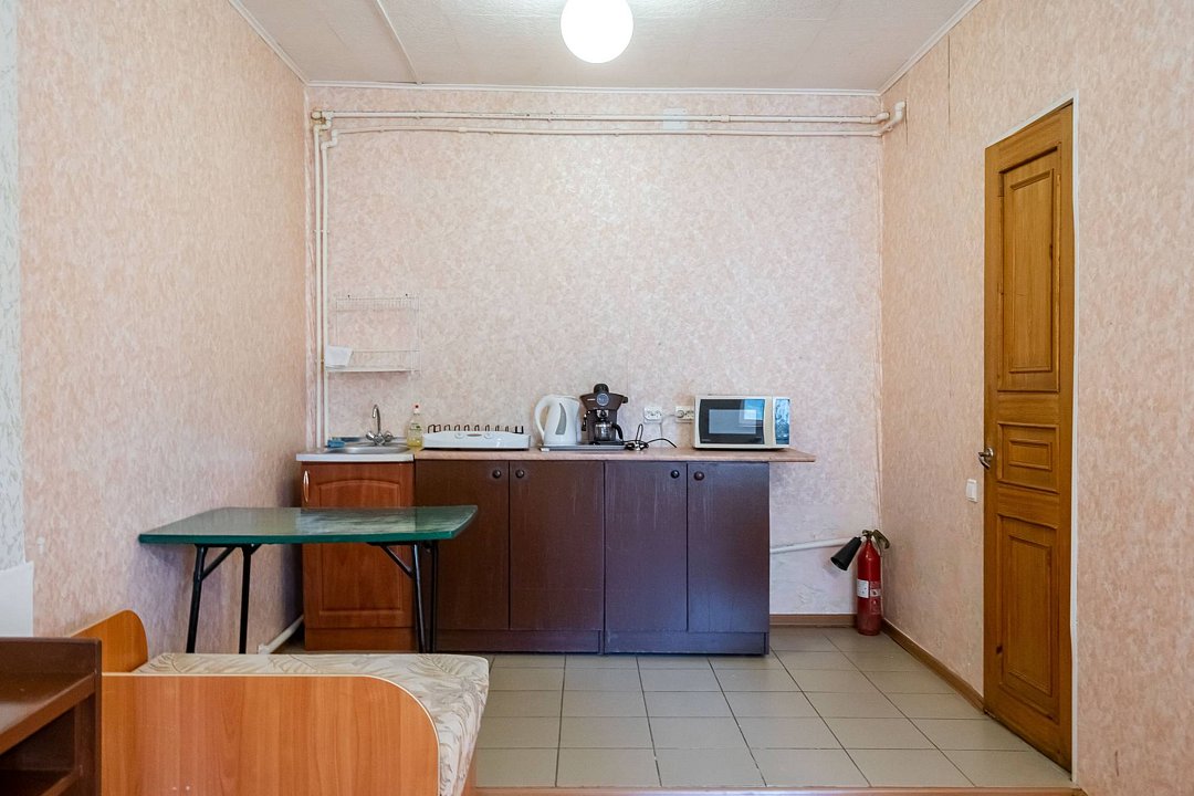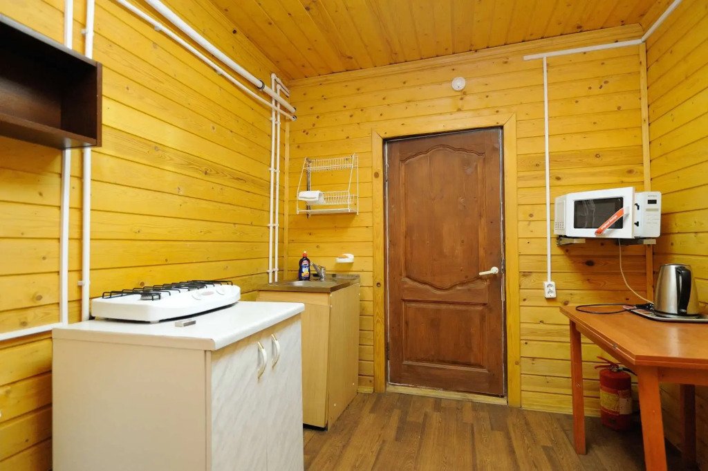 - микроволновая печь, холодильник, двухконфорочная газовая плита, электрический чайник, комплект посуды;