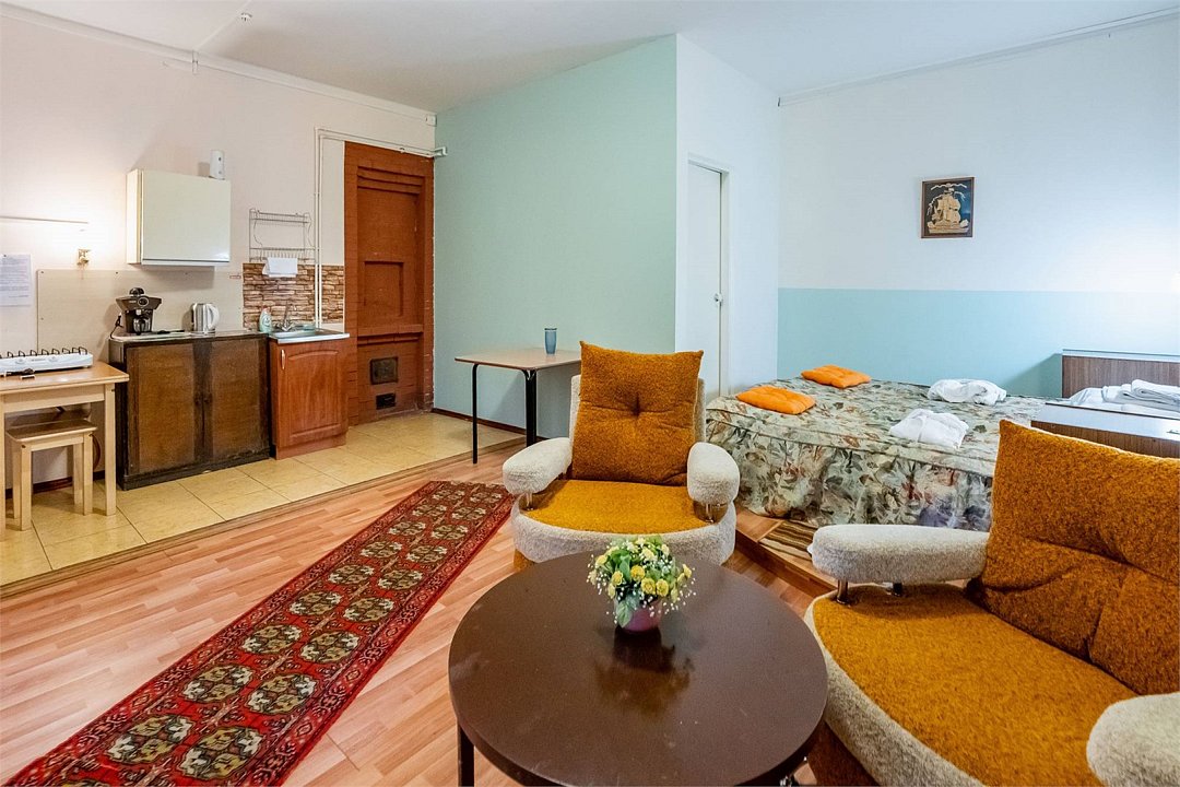 - спальня (двуспальная кровать) и комната отдыха (мягкая мебель);