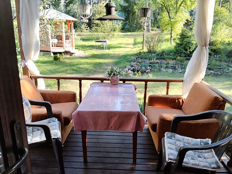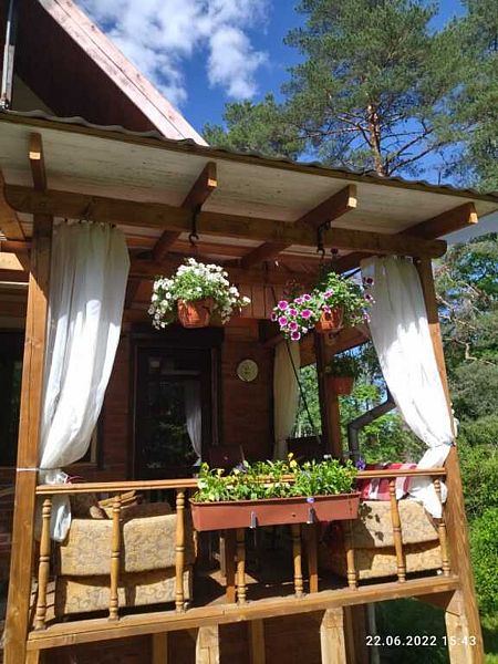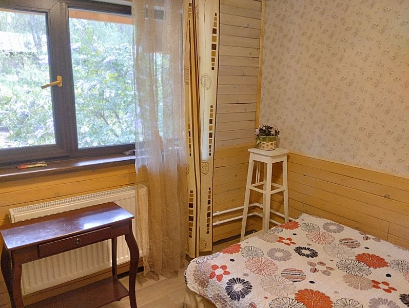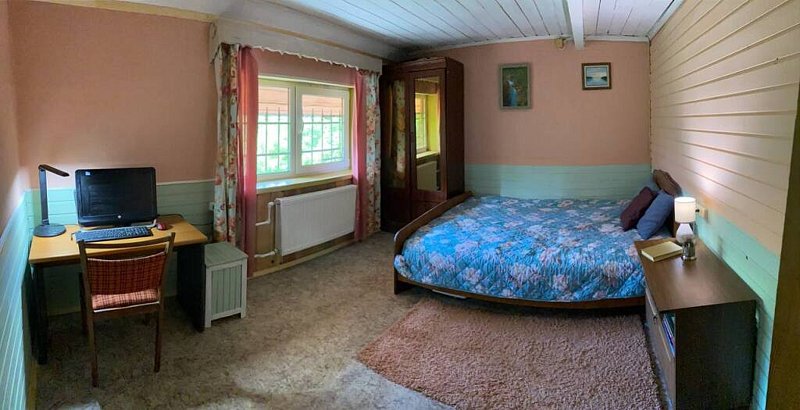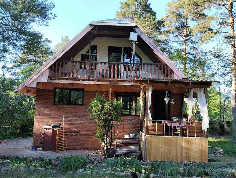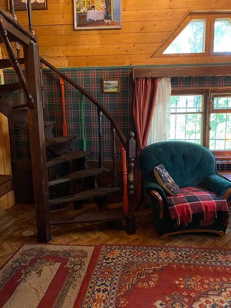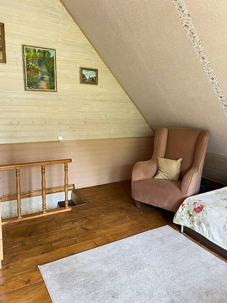 Дом вмещает до 9 гостей. На первом этаже 2 спальни, на втором этаже также 2 спальни. Кроме этого, раскладывается диван в гостиной. В цокольном этаже находятся душевая и сауна.