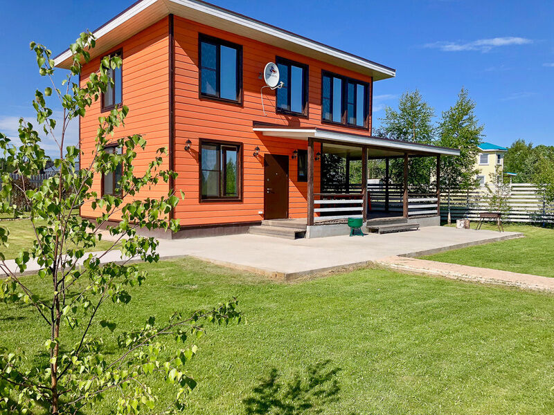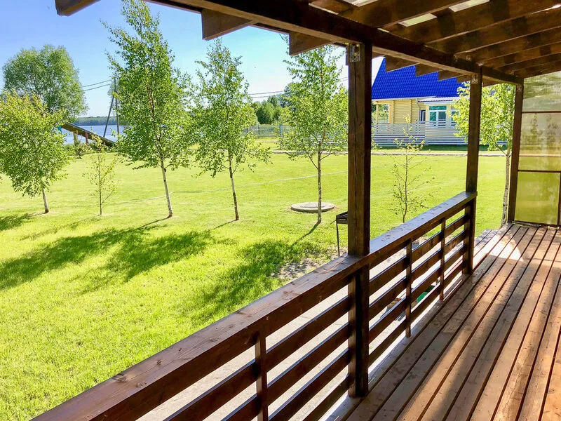Коттедж на берегу озера до воды 30 м, обставлен стильной и современной мебелью. Для удобства гостей в доме: теплые полы, спутниковое ТВ, DVD, караоке, современная кухня полностью укомплектованная посудой и всеми необходимыми приборами, холодильник и микроволновая печь. Своя финская сауна. 2 туалета, 2 душа, 5 спален с двуспальными кроватями, терраса 38 м2, индивидуальный паркинг. Рядом лес, песчаный пляж, пирс длиной 20 м, зона отдыха с мангалом, зимняя горка высотой 5 м, детская площадка, лодка, охрана, круглогодичный подъезд.