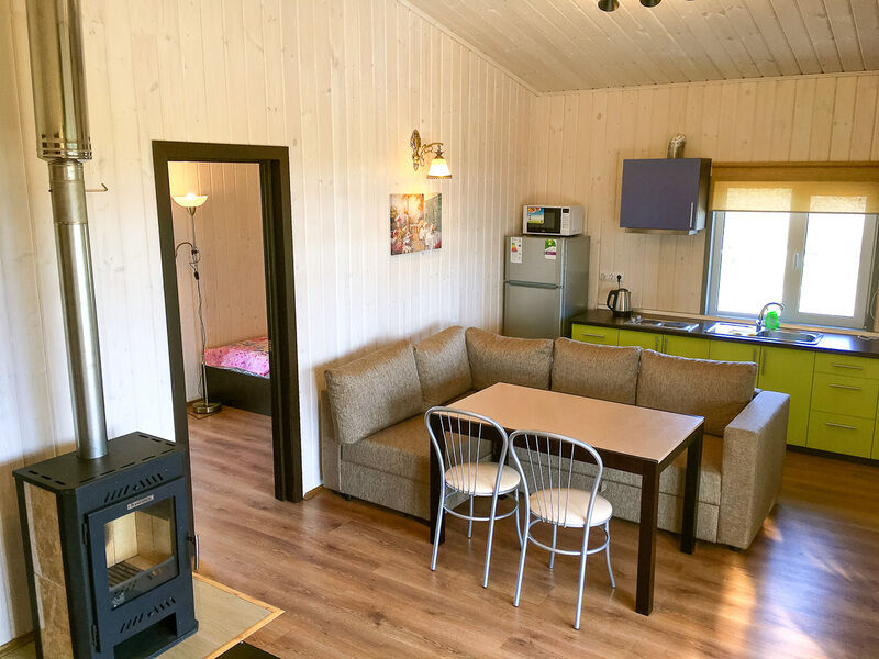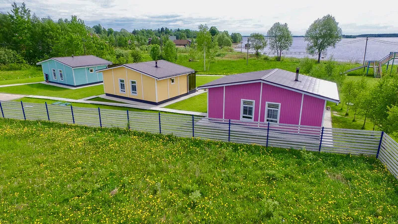 Коттеджи находятся в непосредственной близости к берегу. Деревянные отапливаемые дома из оцилиндрованного бревна, внутренняя отделка вся выполнена из дерева, при строительстве использовались только экологически чистые натуральные материалы.