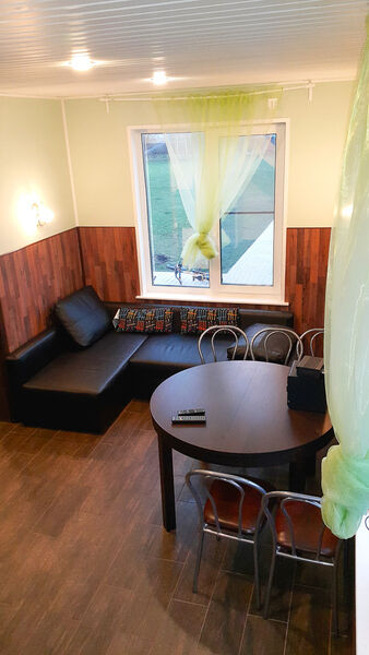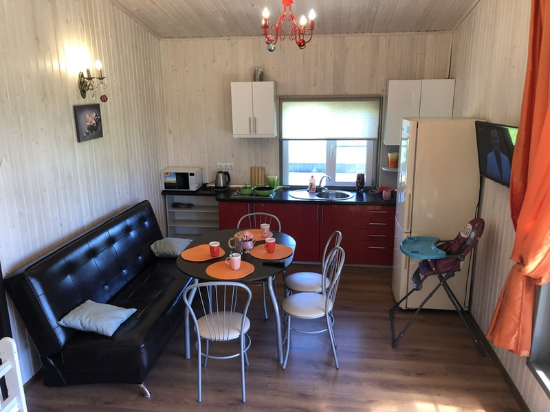 - три двухэтажных загородных строений рассчитаны на 6 и более человек, с уютной кухней с необходимым оборудованием, с санузлом, гостиной, спальными местами, с кроватями и диванами;