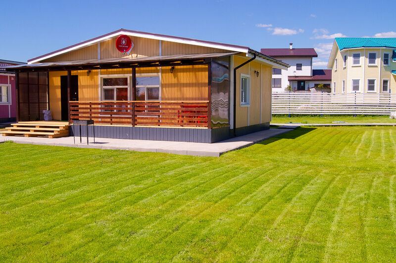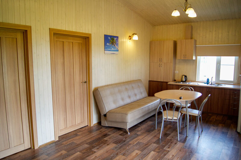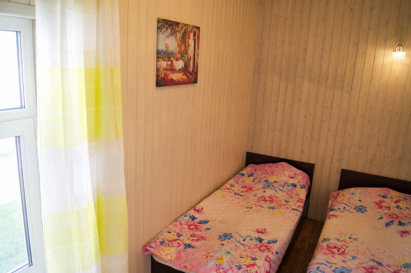 К услугам отдыхающих предоставлено 6 разных загородных домиков с красивыми цветочными названиями: Салатовый, Солнечный, Апельсиновый, Бирюзовый, Кремовый и Розовый.