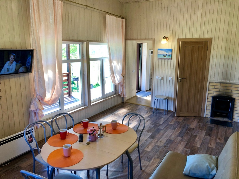 - три домика с размещением 2-4 гостей полностью благоустроены, крытая веранда, кухня с обеденной столом, холл с камином, и диванами, две спальни. Большая прибранная площадка с мангальной зоной;