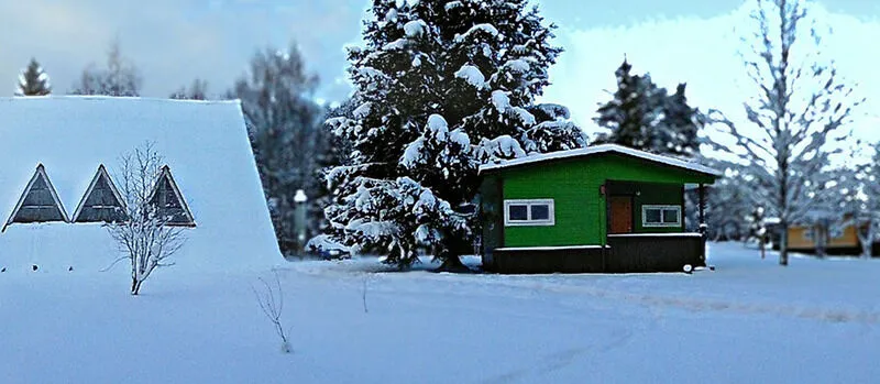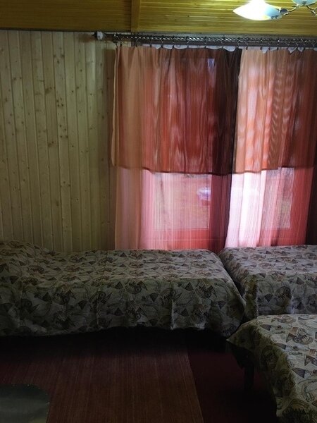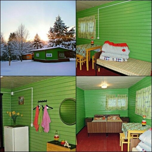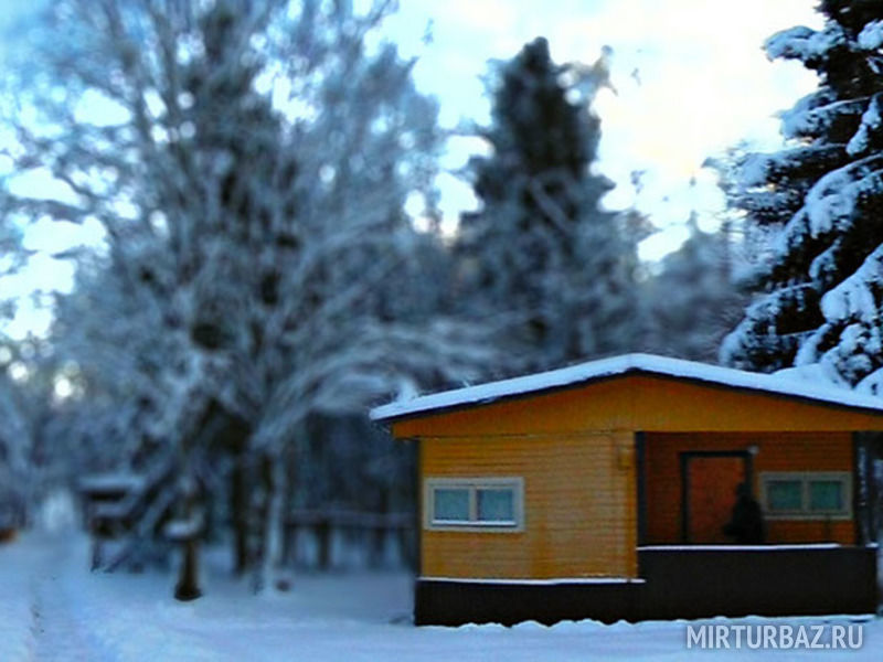 Зимний Домик рассчитан на 6 человек. Планировка - евродвушка. Внутри 2 комнаты + кухня гостиная, душ, туалет. 1ком, Комната: двуспальная кровать,1 односпальные кровати, комод. 2 ком, 3 односпальные кровати, комод. Кухня гостиная: большой просторный холл, кухонный стол. Вся кухонная утварь. *Дополнительная плата за стоянку 1 машины 100 руб./сутки.