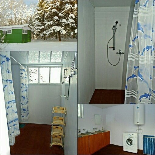 Летний Домик рассчитан на 6 человек. Имеет два номера, у каждого свой вход. Внутри: - 3 кровати - комод для хранения вещей - холодильник. Все удобства на улице в шаговой доступности. - "Кухня - столовая" рассчитана на 50 посадочных мест. Имеет зону для приготовления еды (газ), зону для посуды (3 раковины, горячая вода). - "Душевой комплекс". Имеет 2 душевые кабины, 3 раковины, а также стиральную машину. Дополнительная плата за стоянку машины 100 руб./сутки.