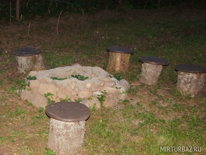 Гости базы отдыха размещаются в небольших одноэтажных домиках без удобств, которые разделены на две части по 3-4 человек. Всего таких домиков 8 (общая вместимость 48 человек). Каждая часть имеет отдельный вход.